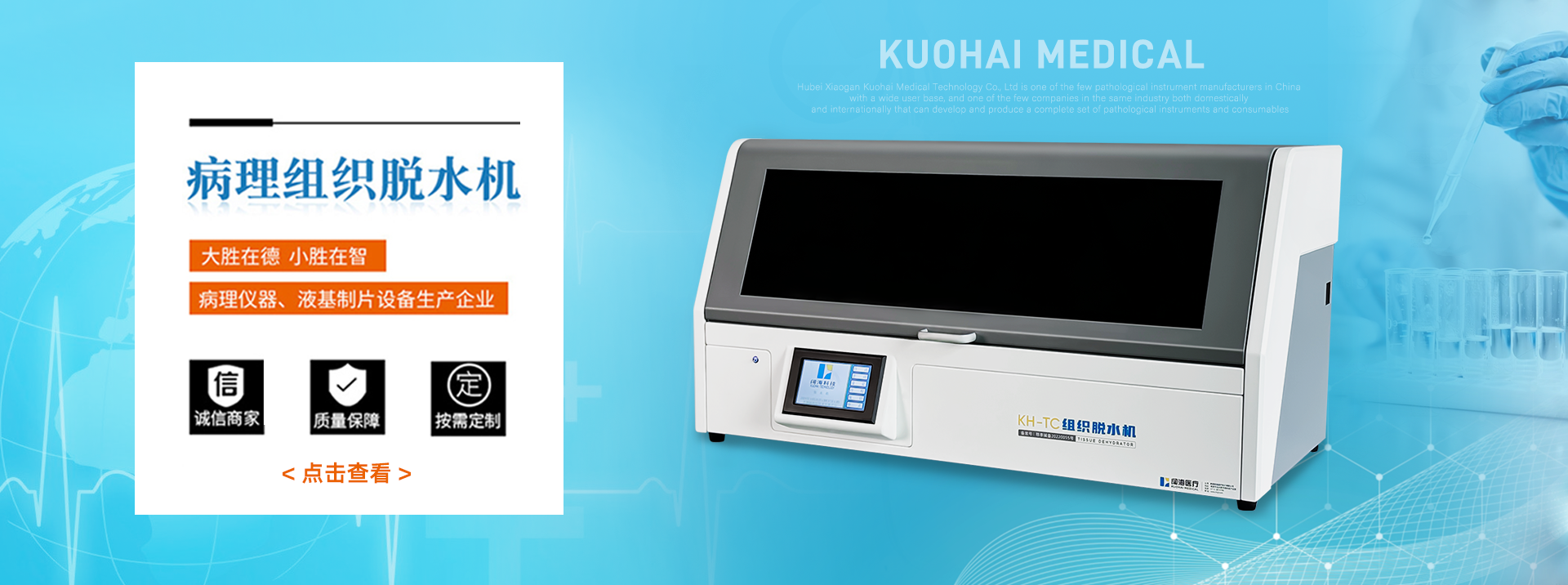 在病理儀器領域,闊海不但成功開發出行業公認的“病理先進技術項目”———全封閉抽真空脫水機,還在國際、國內同行業中,針對醫療設備終端使用客戶,推出“全封閉抽真空脫水機,真金不怕火煉活動”。公司擁有近百項專有技術,曾獲得過17項國家專利、9項軟件著作權,使產品一直保持著技術上的先進性和實用性